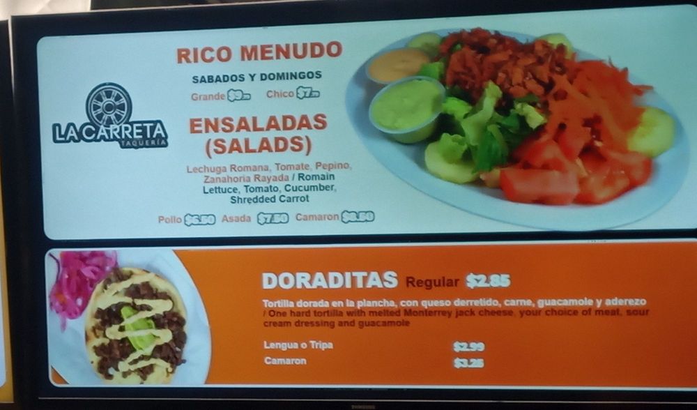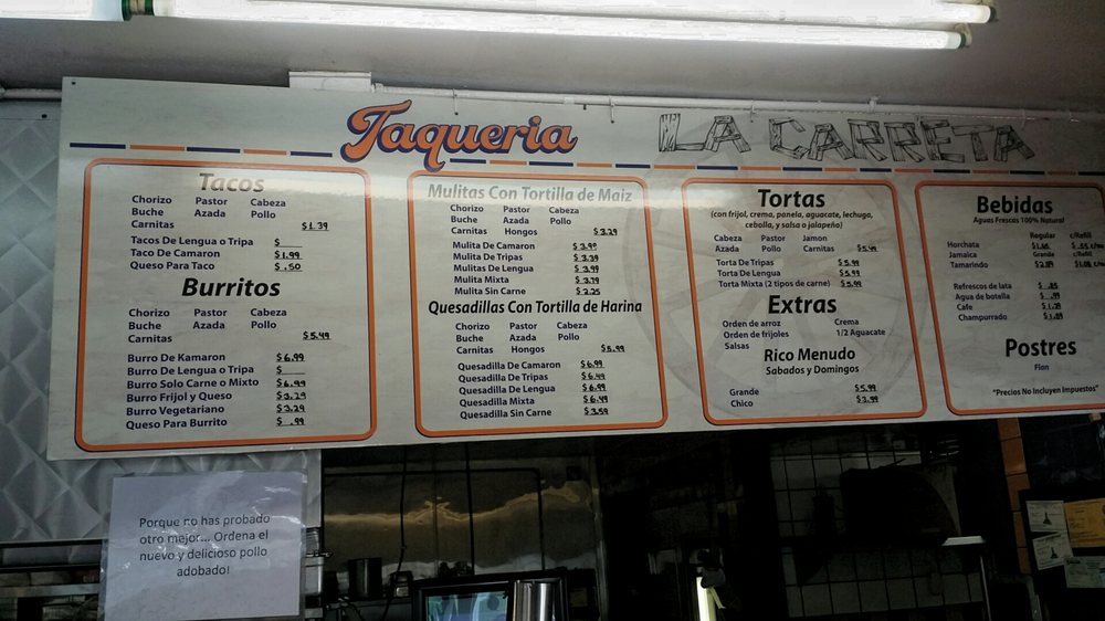 La Carreta, a Mexican restaurant located in Los Angeles, offers a wide range of options for customers, including takeout, delivery, and catering services. With a menu filled with authentic Mexican favorites, such as burritos, tacos, and traditional dishes like Menudo, La Carreta has received rave reviews from customers. Dishes like the tripa taco and hand-made tortillas have been highlighted for their flavor and quality. The restaurant's small space may not have many tables, but it provides a cozy and inviting atmosphere for diners. The addition of a salsa bar and delicious flan adds to the overall dining experience at La Carreta. Whether you're looking for a quick lunch, a family dinner, or a late-night bite, La Carreta is a must-visit spot for anyone craving authentic Mexican cuisine in Los Angeles.